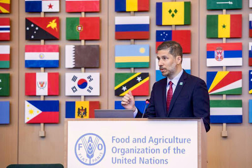 Mario Arvelo pronuncia el discurso central en el debate internacional de alto nivel sobre «Seguridad alimentaria y nutricional en el mundo», celebrado con ministros de Agricultura y de Desarrollo Rural de los 194 Estados miembros de las Naciones Unidas en el marco de la 42ª Conferencia General de la Organización para la Alimentación y la Agricultura (FAO).