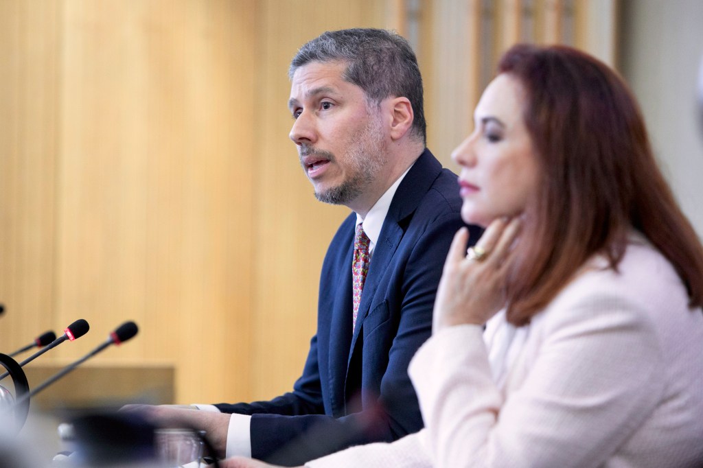 A su lado, figura la presidenta de la Asamblea General de Naciones Unidas María Fernanda Espinosa; los demás panelistas fueron el director general de la Organización de Naciones Unidas para la Alimentación y la Agricultura (FAO) José Graziano da Silva, y el presidente del Fondo Internacional para el Desarrollo Agrícola (FIDA) Gilbert Houngbo.
