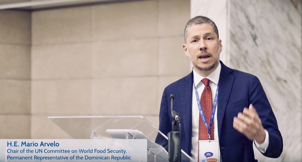 Captura de pantalla de la transmisión televisiva de la intervención que Mario Arvelo realizó en el marco de la Asamblea General de la Organización para el Derecho Internacional del Desarrollo (IDLO) en noviembre de 2018. [Foto ©IDLO]