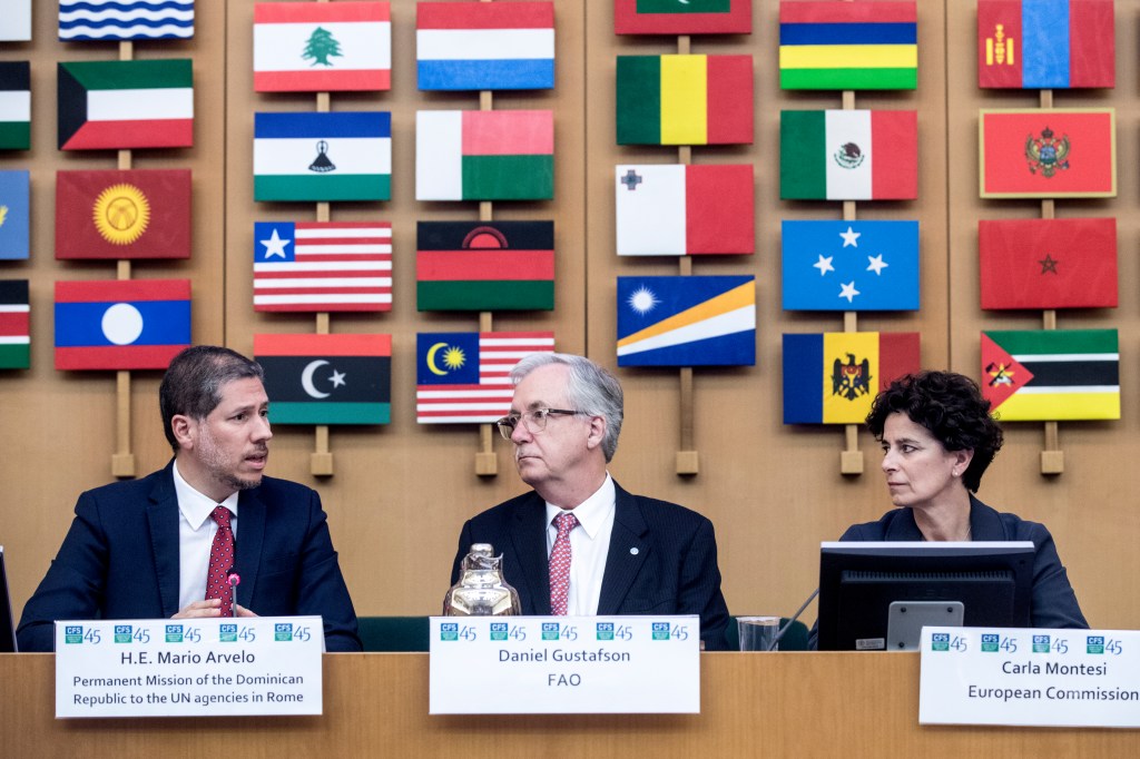 Los demás panelistas fueron la coordinadora del Programa de Agricultura Global y Seguridad Alimentaria (GAFSP) del Banco Mundial Nichola Dyer; la economista Sénior de Agricultura para el Desarrollo del Fondo Internacional para el Desarrollo Agrícola (FIDA) Aslihan Arslan; la secretaria general de la Red de Información y Acción Comida Primero (FIAN International) Sofía Monsalve; el director general Adjunto de la Organización de Naciones Unidas para la Alimentación y la Agricultura (FAO) Daniel Gustafson; la directora para el Planeta y la Prosperidad de la Dirección General de Cooperación Internacional y Desarrollo de la Comisión Europea Carla Montesi; el embajador de Irán ante la FAO y presidente del Comité de Agricultura de Naciones Unidas Mohammad Emadi; la líder del Programa Estratégico de la FAO para la Erradicación del Hambre Brave Ndisale; el líder del Programa Estratégico de la FAO para Reducir la Pobreza Rural Benjamin Davis; y la asesora del mismo Programa Ana Paula de la O Campos. El panel de expertos tuvo lugar en la FAO el 15 de octubre de 2018.