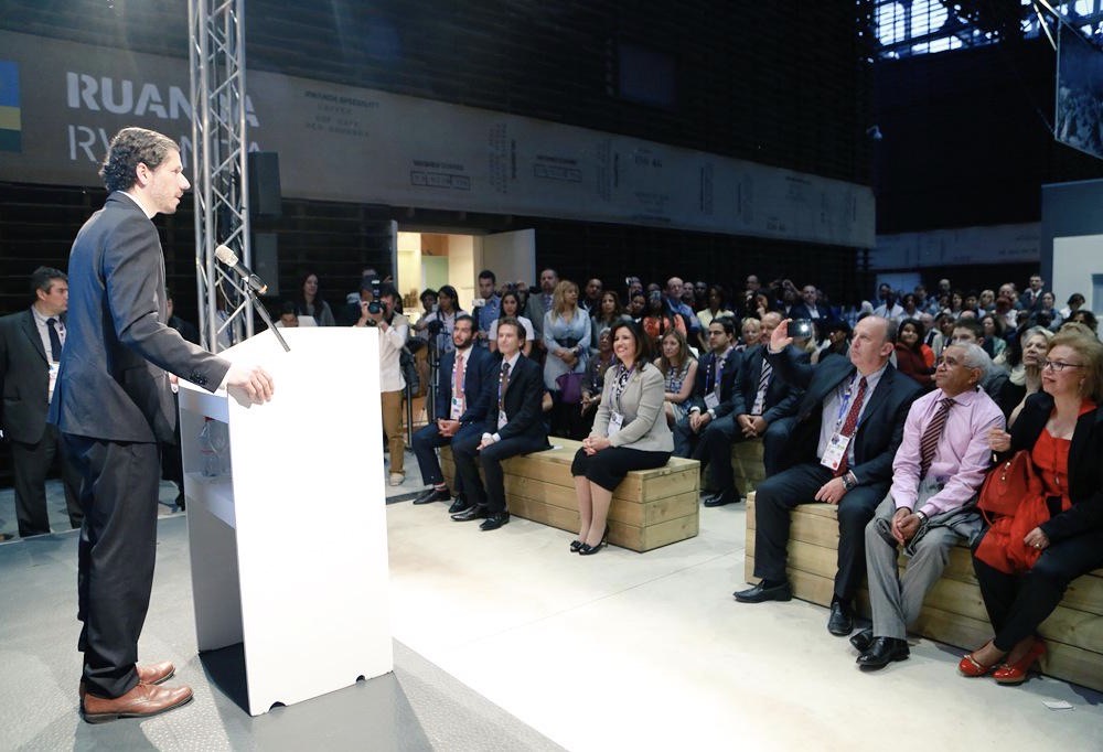 Mario Arvelo pronuncia el discurso central en el Día de República Dominicana en la exposición universal Expo Milano 2015, en el cual afirmó que la ciudad de Milán y la República Italiana han acertado al utilizar la Expo para llamar la atención global sobre la importancia de la alimentación. El tema de Expo Milano enfoca la nutrición adecuada de quienes tenemos acceso al pan cotidiano, y examina los retos que debemos superar para que todos los ciudadanos de todos los países puedan ejercer el derecho humano fundamental a la seguridad alimentaria. República Dominicana comparte esta visión, y por eso estamos aquí. La propuesta dominicana empodera a los agricultores familiares, impulsando las asociaciones y las cooperativas; el énfasis en el apoyo técnico y en la creación de capacidades locales incorpora buenas prácticas y, en consecuencia, garantiza la sostenibilidad en un modelo que genera oportunidades para que los campesinos aumenten sus ingresos, mejoren su nivel de vida y conquisten espacios en el mercado global. Esa es la oferta conceptual que desde nuestro pabellón presentamos al mundo con la satisfacción de que los organismos especializados de Naciones Unidas comprueban su efectividad para lograr la seguridad alimentaria y nutricional.