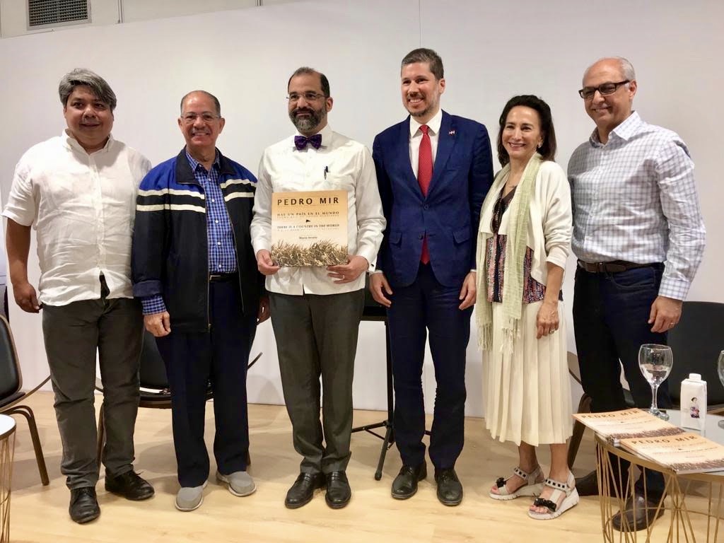 El embajador de República Dominicana en España Olivo Rodríguez, acompañado del ministro de Cultura Eduardo Selman (a la izquierda), entrega a la Reina Letizia un ejemplar de la edición de Mario Arvelo de Hay un país en el mundo | There Is a Country in the World, de Pedro Mir. La ceremonia tuvo lugar en el pabellón dominicano en la jornada inaugural de la 78ª Feria Internacional del Libro de Madrid, el 31 de mayo de 2019.Cinco amigos dominicanos acompañan a Mario Arvelo al término de una presentación/panel/conversatorio sobre Hay un país en el mundo | There Is a Country in the World. Desde la izquierda, el exviceministro de Trabajo Martín Bretón (comentarista); el Premio Nacional de Literatura José Alcántara Almánzar (panelista); el embajador en España Olivo Rodríguez (moderador); Arvelo; la Premio Nacional de Poesía Soledad Álvarez (panelista); y el consultor jurídico del Poder Ejecutivo Flavio Darío Espinal (comentarista). La actividad fue celebrada en el pabellón de República Dominicana en la 78ª Feria Internacional del Libro de Madrid, el 6 de junio de 2019.Niña dominicana, foto tomada por Mario Arvelo en el ingenio azucarero Cristóbal Colón de Santo Domingo en 2006. Esta imagen, una de las veinte que ilustran Hay un país en el mundo | There Is a Country in the World, forma parte de la colección fotográfica de la Organización de Naciones Unidas para la Alimentación y la Agricultura (FAO), y cuelga en la Sala del Mapa de su sede en Roma.