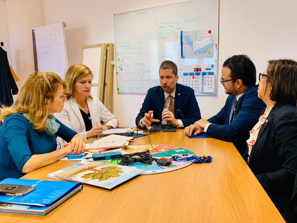 Mario Arvelo in a working meeting —on the margins of the Executive Board of the World Food Programme (WFP)— with Director of Nutrition Lauren Landis (left), Deputy Director Nancy Aburto, Technical Secretary of the National Council of Food Security and Nutrition of the Dominican Republic Rommel Vargas, and Vice-Minister of the Presidency (Deputy Chief of Staff to the President) Alejandra Liriano.