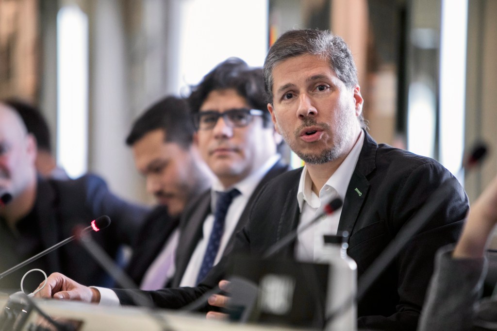 Mario Arvelo pronuncia un discurso en ocasión del lanzamiento global del Decenio de Acción de Naciones Unidas para la Agricultura Familiar, en la sede de la Organización de Naciones Unidas para la Alimentación y la Agricultura (FAO) el 27 de mayo de 2019. A su lado, la presidenta de la Asamblea General de Naciones Unidas María Fernanda Espinosa. [Foto ©FAO/Giulio Napolitano]