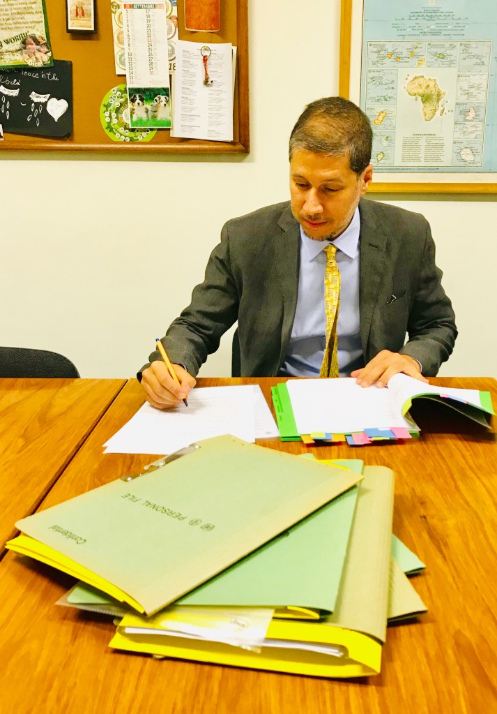 Mario Arvelo junto al secretario del Comité de Apelaciones de la Organización de Naciones Unidas para la Alimentación y la Agricultura (FAO) y el Programa Mundial de Alimentos (PMA) Nicola Ferri. El comité sesiona con un panel de cinco miembros y opera en cámara de consejo, es decir, sus reuniones son cerradas al público para resguardar la privacidad de los apelantes. El reglamento prevé que las deliberaciones sean presididas por un embajador, con la participación de cuatro funcionarios de Naciones Unidas: dos designados por el director general de la FAO y el director ejecutivo del PMA, y otros dos escogidos por las respectivas asociaciones de servidores públicos internacionales. Las recomendaciones del comité pueden ser apeladas ante el Tribunal Administrativo de la Organización Internacional del Trabajo. [Foto cortesía de Michelle McCormack]