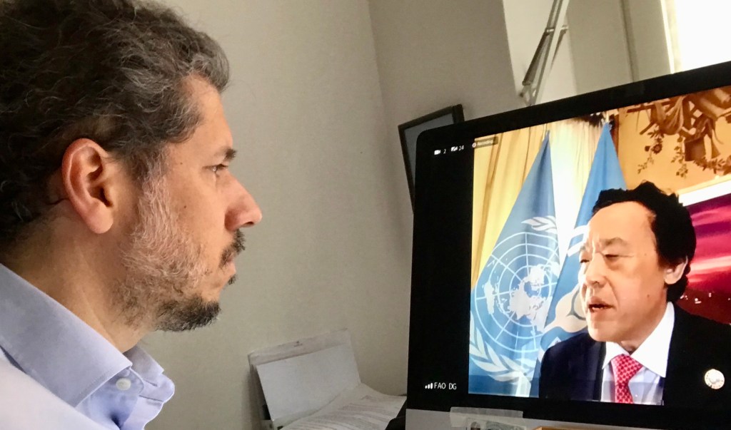 Mario Arvelo participa por conexión electrónica en la sesión especial del Consejo de Seguridad titulada «Protegiendo a la población civil del hambre provocada por los conflictos», en cuya preparación colaboró. La reunión, que debió realizarse de modo virtual debido a las medidas de distanciamiento por la pandemia de coronavirus/covid-19, fue organizada por la Presidencia dominicana del órgano, bajo la conducción del Embajador José Singer. Los presentadores fueron el Director General de la Organización de Naciones Unidas para la Alimentación y la Agricultura (FAO) Qu Dongyu (en pantalla); el Director Ejecutivo del Programa Mundial de Alimentos (PMA) David Beasley; y el Secretario General del Consejo Noruego para los Refugiados Jan Egeland. El Ministro de Relaciones Exteriores dominicano Miguel Vargas realizó la primera intervención en respuesta a las presentaciones, donde subrayó que la pandemia nos ha puesto de nuevo ante la insoportable evidencia de que en pleno siglo XXI, a pesar de estar dotados de capacidades productivas cada vez más eficientes, el cumplimiento del objetivo de desarrollo sostenible número dos de Hambre Cero no está garantizado. La desigualdad económica y la pobreza extrema, así como el cambio climático y las catástrofes naturales, son factores detrás de la inseguridad alimentaria; el hambre, el aumento de las tensiones sociales y los desplazamientos de población pueden traducirse en mayor presión económica y social para países receptores muchas veces aquejados por diversas vulnerabilidades. Allí donde impera la inseguridad alimentaria vemos terreno fértil para el conflicto, en especial si se suman la desigualdad y la fragilidad institucional. Es oportuno, en este contexto, aplicar el Marco de Acción para Crisis Prolongadas del Comité de Seguridad Alimentaria Mundial. La sesión especial del Consejo de Seguridad se celebró el 21 de abril de 2020.