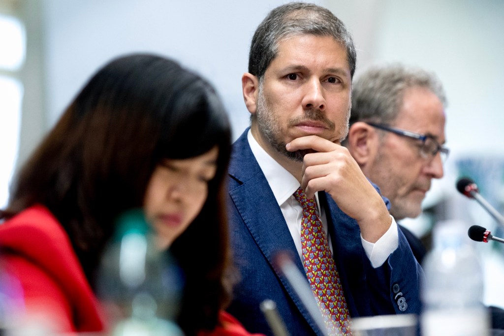 Mario Arvelo preside las negociaciones que concluyeron con la aprobación de una reforma estructural del Comité de Seguridad Alimentaria Mundial (CSA). Su destreza en la conducción de debates diplomáticos intergubernamentales, sumada a su larga y exitosa experiencia en la construcción de puentes para concertar con múltiples partes interesadas [stakeholders], incluyendo entidades especializadas de Naciones Unidas, agencias de cooperación para el desarrollo, la sociedad civil organizada, el sector privado, centros de investigación, universidades, entidades filantrópicas e instituciones financieras internacionales, entre otros actores representando intereses diversos, le permitieron cristalizar dos ambiciosos paquetes de reformas, uno en octubre de 2018, y el segundo, sobre la inclusión, la transparencia y la legitimidad democrática del Comité, en 2019. En la imagen aparecen la diplomática china Jiani Tian y el secretario del CSA Mark McGuire. [Foto ©FAO/Alessandra Benedetti]
